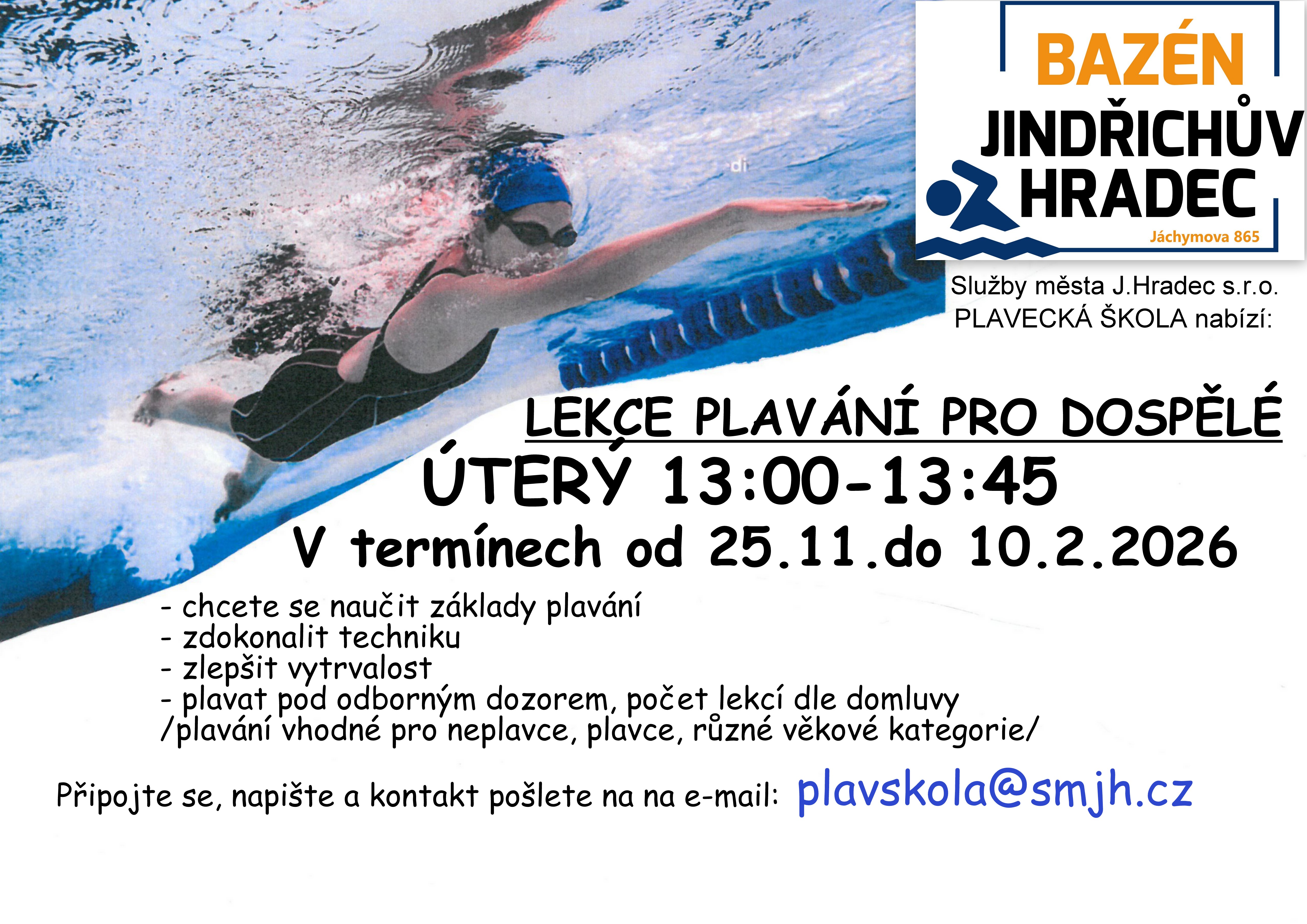 ODPOLEDNÍ NABÍDKA pro dospělé. Chcete se zdokonalit v plavání a máte odpoledne čas? Pak je to možná nabídka právě pro vás. Individuální přístup dle vaší dovednosti, počet lekcí dle dohody.