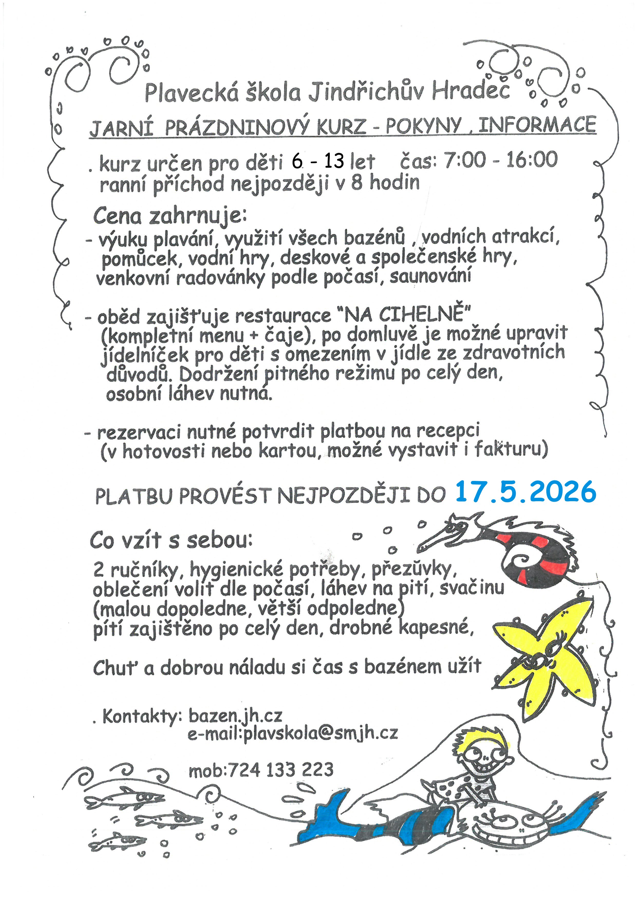 Do projektu jsou zapojeny i Služby města Jindřichův Hradec. Díky tomu lze získat dotaci i na plavání v rámci Plavecké školy JH.